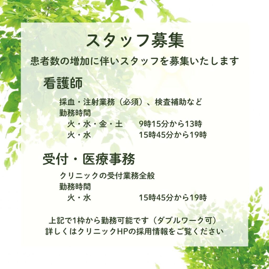 スタッフ募集のお知らせです。詳しくは採用情報をご覧ください。