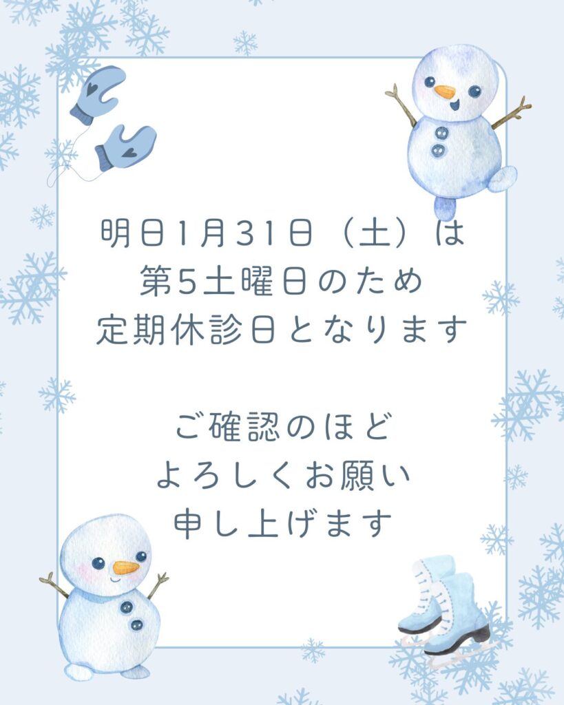 明日1月31日(土)は第5土曜日のため定期休診日となります。
