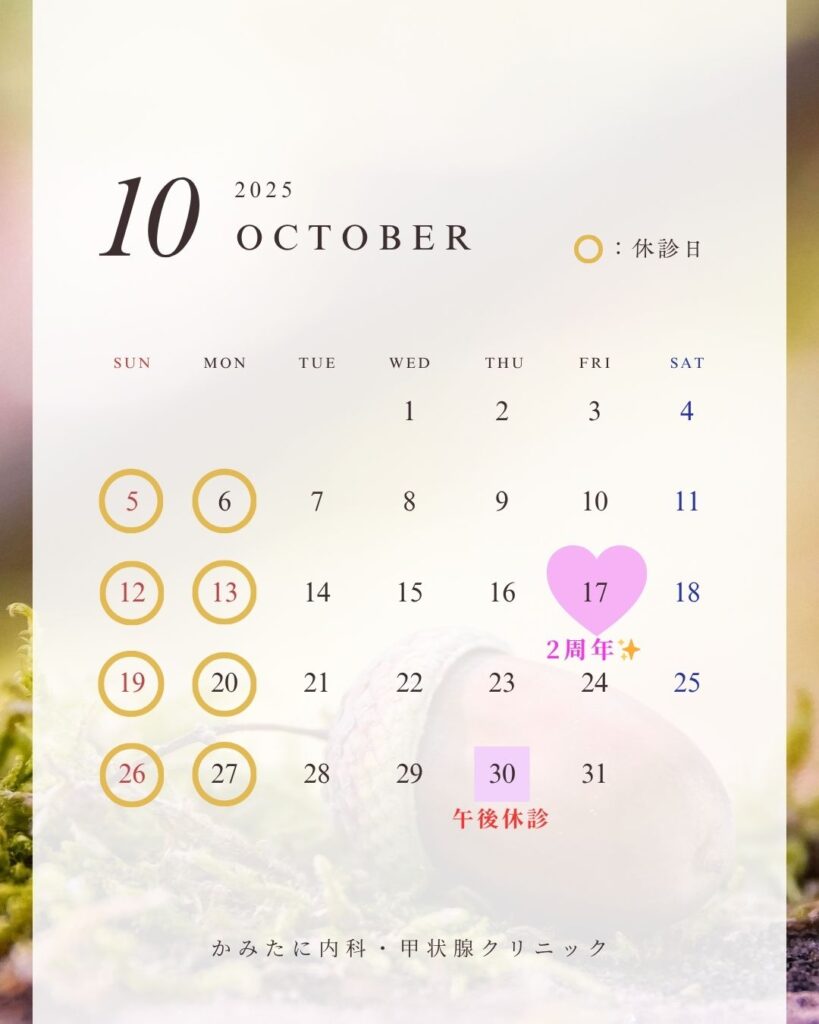 10月30日木曜日は、午前のみの診療(受付12時30分まで)とさせていただきます。